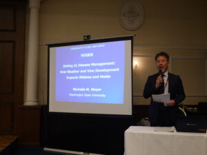 Michelle M. Moyer氏(Washington State University)による「Dialing In Disease Management: How Weather and Vine Development Impacts Moldes and Molds (病害管理の最適化:天候とブドウ樹の生育がカビ類に及ぼす影響)」の講演が行われました。