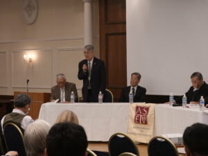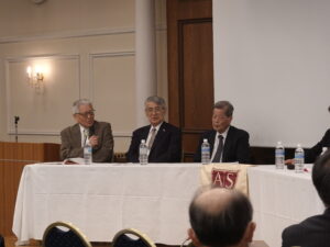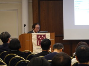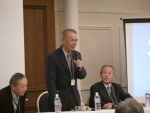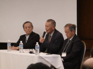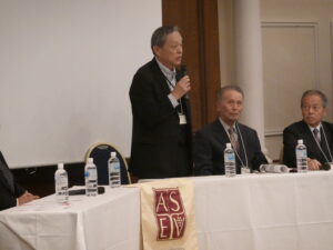 40周年記念大会の企画として、「ASEV JAPAN Chapter 40年を振り返るシンポジウム」が開催されました。パネリストとして、米虫節夫氏・松本信彦氏・上野 昇氏・袖山政一氏・松土俊秀氏、ファシリテーターとして味村興成氏が登壇されました。